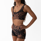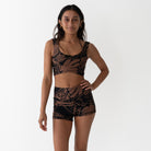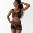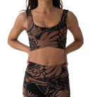 The ultimate in surf-luxe function. Our Surf Bra in Cocoa Shell delivers support for ocean sessions or active days, with a chocolate and black shell print that makes a subtle statement. Pair with any Cocoa Shell bottoms for a full set. Sustainably crafted from recycled Repreve® fabric.
