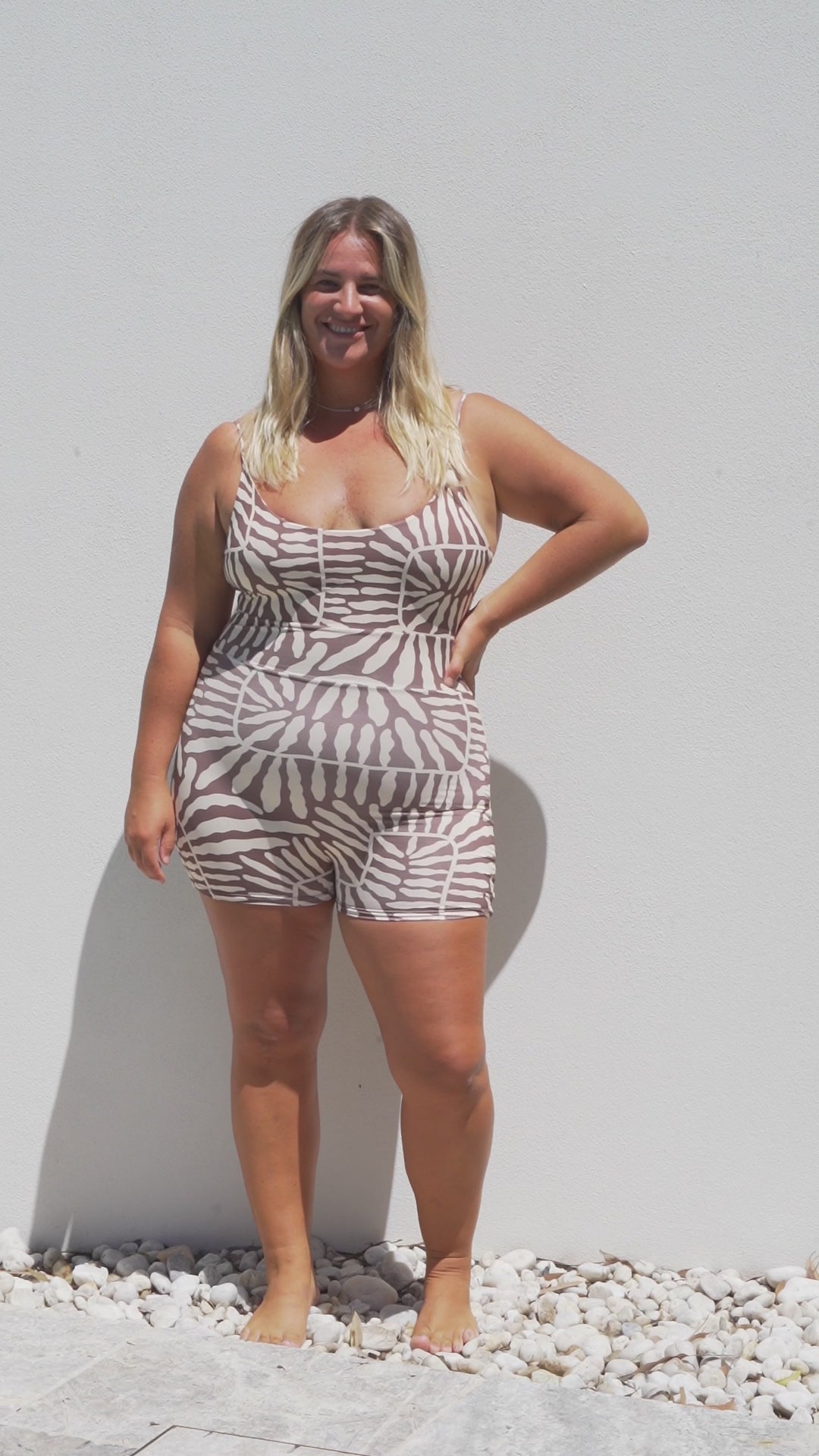 This one-piece wonder is designed to move with you, from ocean dips to studio flow. Made from ultra-soft recycled Repreve® fabric, it sculpts and supports in all the right places while feeling barely there. With a flattering scoop back, functional booty-short cut, and adjustable straps, this suit is made for surf, swim, stretch, or sun.