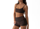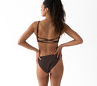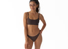The Luxe Rib Active Swim Bralette is designed for all-day movement. A chocolate base layered with ribbed black, this top offers support for surf, swim, gym sessions, and beyond. Soft yet supportive, crafted from recycled Repreve® fabric. Quick-dry and true to size.