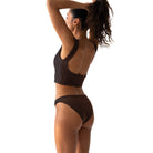 A timeless classic. The Bikini Bottom in Luxe Rib brings together a more minimal coverage with our unique chocolate and black ribbed fabric. Designed for confident movement in and out of the water.