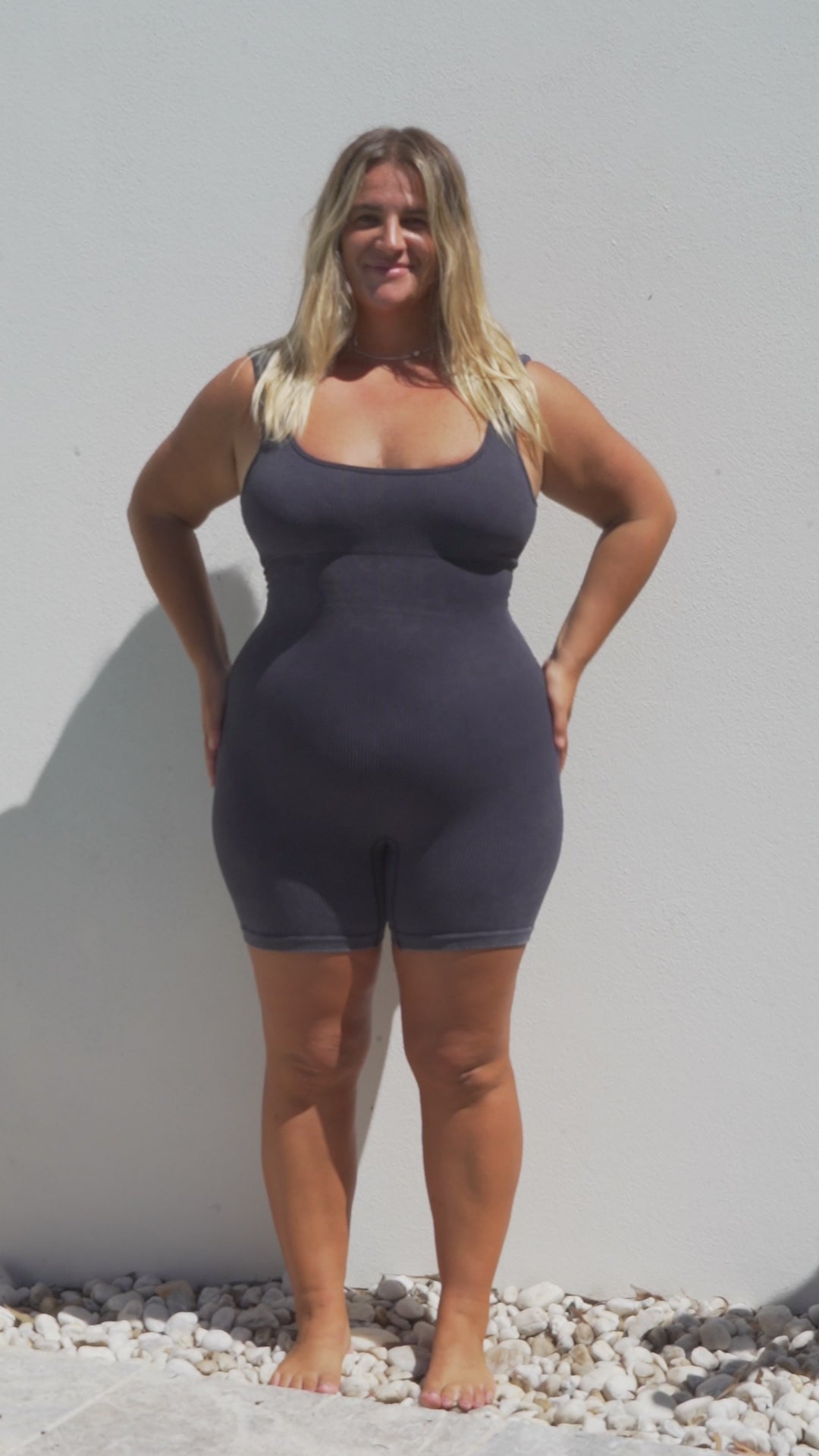 The soft acid wash finish gives it that worn-in, effortlessly cool feel, while the supportive bust and sleek cut keep you feeling secure and sculpted — no fuss, no compromise.