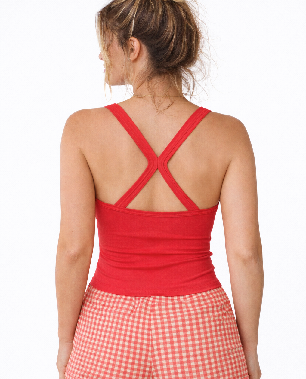• Cross-back strap detail for a relaxed feminine look